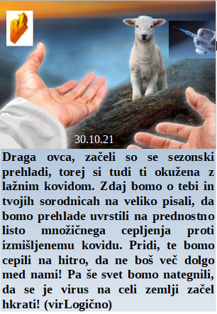 Celo pilote opozarjajo na nove 5G sisteme, ki jim lahko sesujejo navigacijske sisteme ob vzletu ali pristanku. Vedno več osebja rabijo za laganja in po okužbah z lažmi ti komaj najdejo čas do banke. So pa zato izjemno plačani za to delo. Medtem pa v Tongi spoznavajo prvega podtaknjeno okuženega z lažnim virusom. Zato pa Weimar ne bo več preverjal smrti meščanov, saj se ve, da je vse delo cepiv. Ovca ti pa si dobila gripo na pašniku, zato pazi, da ti v hlevu ne vsilijo cepivo za lažni kovid!
