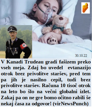 Bomo letos raje o gripi nakladali, jo ljudje poznajo in bodo lažje nasedali. Je celo nekdanji šef NATO pod policisjko preiskavo v Latviji. Rusija naj se vrne k žitu, NATO pa bo naredil vse v Ukrajini. Kanada in fašizem, evtanazija otrok brez privolitve staršev!