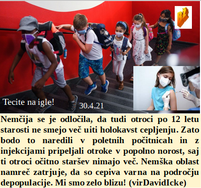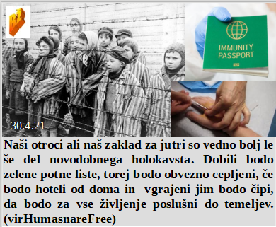 36 milijard za žepe naših vladarjev, narod tega ne bo mogel odplačati. Je pred 1.majem določeno, da številke ne smjo preveč rasti. Nemci se vračajo na holokavst celo pri otrocih do 12 leta! Kako zaprtost države škoduje otrokom, ki so zaprti doma pred 5G šolo! In potni listi zelene lažne barve so tudi pot v holokavst.