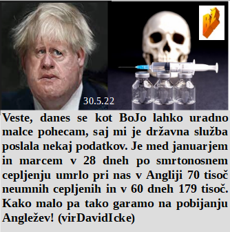 Želim si le, da moje ljudsko delo in razmišljanje nista bila zaman. V naši idiotski državi je v 28 dneh umrlo 70.000 cepljenih in mi v vladi smo zelo ponosni. A so arheologi na severu Slovenije že našli prve cepljene okostnjake? Avstralija revnim ne da več mesa, ker rabijo denar za njihovo zapraševanje.