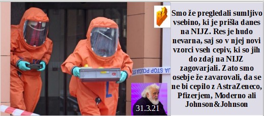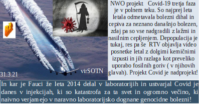 Je elita že dolga leta nazaj vedela, da bo podtaknila lažni Covid, naši politiki pa danes temu na polno verjamejo. Prav zato upravljajo s številkami lažno okuženih kot na sejmu kdo da več laži. Pa jim celo na službena mesta prinesejo skrita cepiva, ker se sami nočejo cepiti zares, saj vedo zakaj. In dan norcev je pri nas začetek vojaške države, kot še nikoli do zdaj.