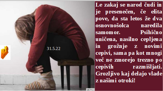 Zaradi oblastniške zlobe in grozljivih dejanj sta letos celo dva osnovnošolca storila samomor. Cepljene družine pa doživljajo množična medsebojna nasilja, saj so psihično uničene. Ko izgubiš volitve moraš vrniti vse, kar so ti tudi za propagando laganja plačevali.