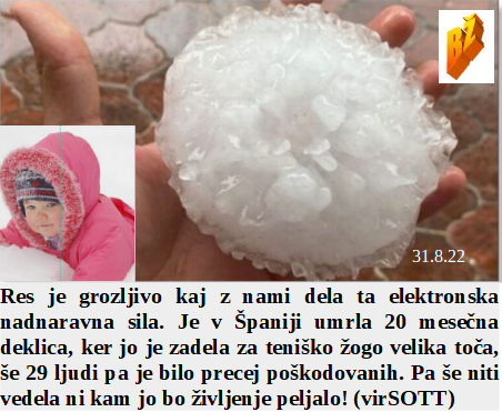 Pokojnina je priletela, toliko, da bo celo za hrano, kaj pa za položnice? Imam težave na RTV, ker ne znam toliko sladkarij izbruhati kot vi. Grozljivo kaj dela sodobna vremenska tehnologija, je 20 mesečna deklica morala umreti! Komaj že čakamo, da tudi zdravniki in sestre stopijo pred sodišče za svoje cepilne zločine.