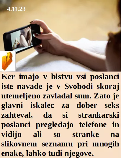 Je vse poslance zaskrbelo, če na telefonu ostalih poslancev niso kar njihovi večerni partnerji. Sprava je pomembna tudi za preskok političnih krožnikov. Bivša Jugoslavija je sramotno podprla nacizem na OZN. Šef kovida je že pred izbruhom vodil laboratorij o tej epidemiji.