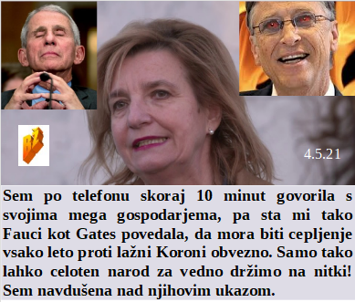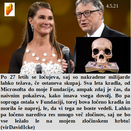 Danes denar eliti služi največ za ustrahovanje in uničenje ljudstva. Premalo smo cepili starih, zato gre naša epidemija naprej. Enemu od para je bilo premalo zločinskih dejanj, zato se ločujeta. Sta naši mojstrici covid nategovanja svetovna zločinca razložila, da se morajo vsi cepiti vsako leto. In kakšna je razlika v nategovanju ljudstva o cepljenju med levimi in desnimi?