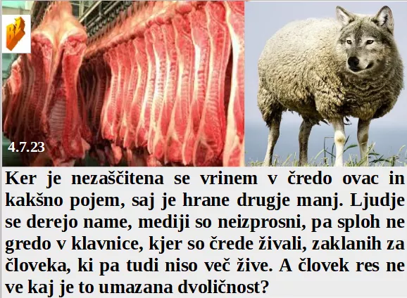 Zbirajo milijone za Ukrajino, da so naši upokojenci lačni. Smo toliko neumni, da zaupamo farmaciji, zato nas imajo radi. Šolarje je treba podučiti o podnebnem segrevanju in podiranju šol. Se splazim med ovčjo čredo in eno pojem, torej jih ostane za zakol le 99. Draga Amerika, pri nas drugo leto ne bo volitev kot pri vas, ne bom dovolil.
