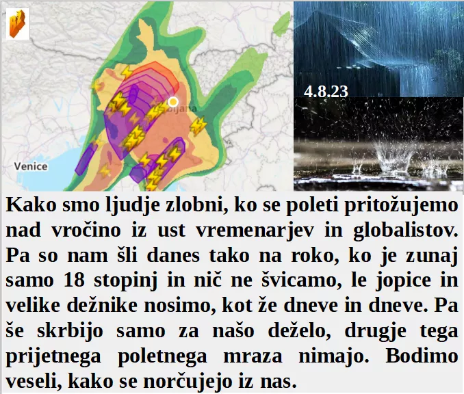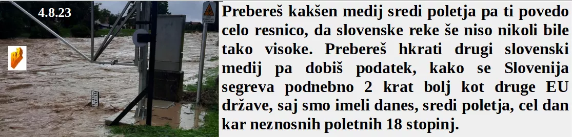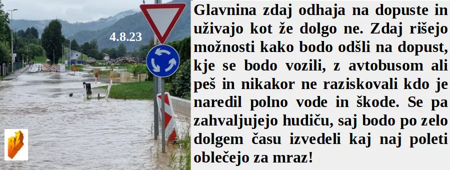 Je naloga oblastnikov prepovedati razmišljanje v slogi Orwella. So morali danes ljudje malce bolj razmišljati ali bodo šli na dopust z avtom ali peš. Pa so nam šli danes tako na roke, ne vremenarji ampak strokovnjaki elektronike. In čeprav še nismo imeli tako visokih rek se ogrevamo dvakrat bolj kot druge države, a ne!