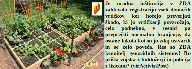 So zločinski dogodki kot sta recimo 9/11 in Ukrajina le izgovori globalistov za vojne. Če se znaš javno pretepati potem si res lahko v Parlamentu. ZDA hočejo lačne Američane, morajo vsak domač vrtiček uradno registrirati. Pa ljudje ne vedo, da skrajni desničar dela za levo vlado. In ZDA nasilno spreminjajo spole otrokom!