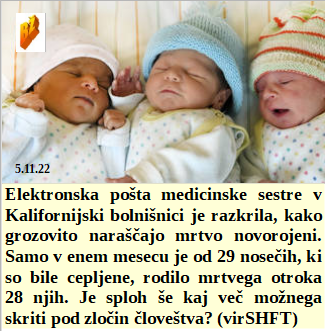 Če se bo svet hotel rešiti in obstati bo moral hudo udariti po kovidnem klanu. Bo lepota po volitvah prevladala v SD? Vojne so izum globalističnih milijarderjev, zanje pa ljudje množično umirajo. Je ušla elektronska pošta medicinske sestre in razkrila koliko novorojenčkov takoj umre.