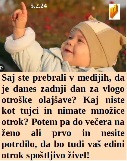 Niste oddali vloge za otroške olajšave, kaj nimate kot begunci desetine otrok? Na Brdu o robotih, a bodo morali previdno. Tudi zasebni zdravniki hočejo posel preko Fidesa. Nič več Brnik, ne bodo menda sami sebe zastrupljali!