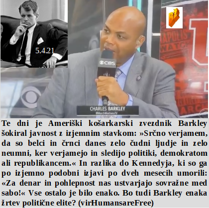 Obdržati službo in plačo pomeni delovati proti ljudstvu. Ankete so zgolj zavajanje ljudstva in z izmišljenimi podatki doseči razdeljenost. Če hoče Biden premagati četrto in peto generacijo Covida mora cepiti dvakrat vse Američane. To je že skoraj naredil župan New Yorka, je pa koncentracijska taborišča že napolnil s tistimi, ki se niso hoteli cepiti. Je Barkley na poti Kennedyja?