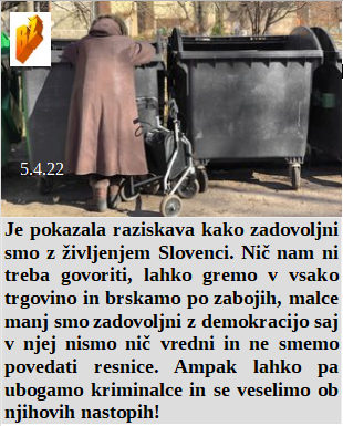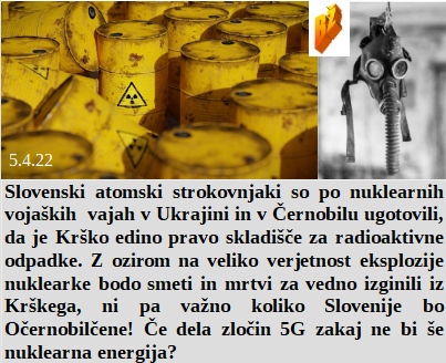 Rodbina Rothschildov prihaja iz Ukrajine, to pove vse. Smo navdušeni Slovenci nad demokracijo, ne smemo govoriti in imamo komaj za jesti. Je kralj 5G za zločine, že dolgo ob soglasju vseh vlad! Bomo atomske nuklearne odpadke iz Ukrajine kar v Krškem shranili? Še noben res pošten politik ni obogatel, ampak teh skoraj ni, poštenih!
