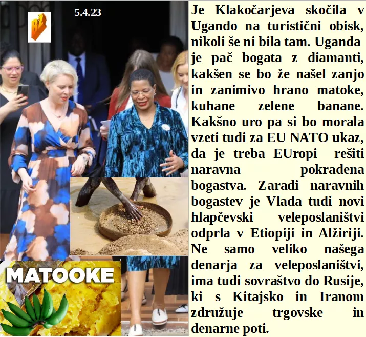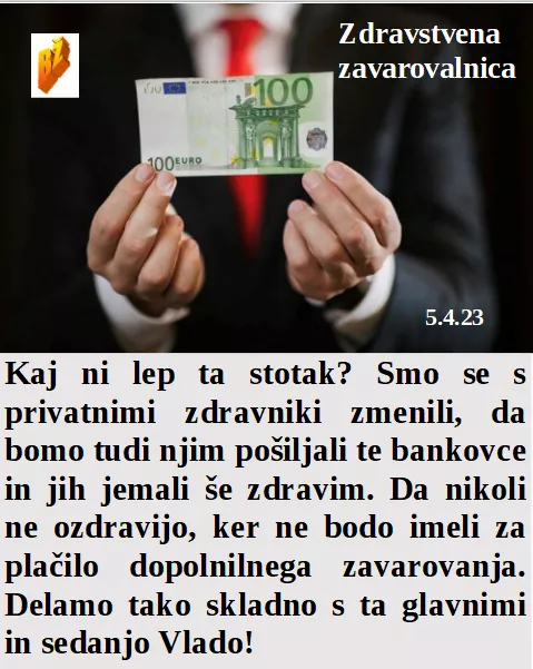 Je od svetovalca Svetovne bankrot banke preskočil še h Golobu. Opazila je kuhane banane na krožniku, ignorirala pa je revščino garaških lačnih otrok. Midva se pa res vse bolje razumeva, pa ne kot ljubitelja pravic in človečnosti. Kako smo uspeli 100-taka vstaviti v zavarovalniško zdravstveni nateg!