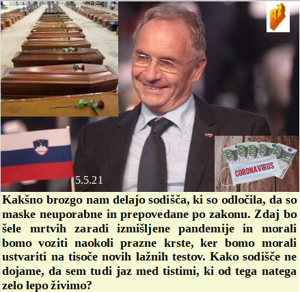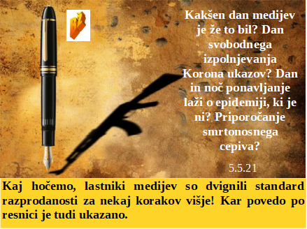 Morje Slovencev, vse na njem pa od tujcev. Kako nagajajo Hojsu na sodišču, saj mu celo mask ne priznajo. Dan kapitalskih medijev in ne dan svobodnih in poštenih novinarjev. In kakšna je razlika med GSO cepljenjem zelenjave in človeka? Vse je isto, vse je treba uničiti!