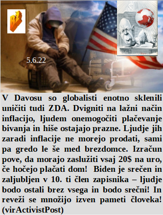 Ko so ugotovili kako izjemno strupeno je zdravilo Remdesivir so ga začeli uporabljati za ubijanje ljudi s kovidom. So na WEF razložili v 10 odstavkih kako uničiti svet in Šarec je bil navdušen. Tudi grafen oksid je v cepivih in tudi izjemno ubija, le težko ga je odkriti. ZDA pa že praznijo preko inflacije in opustošenja bivalnih hiš!