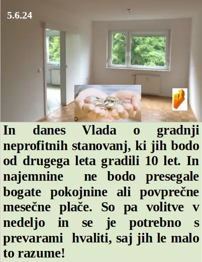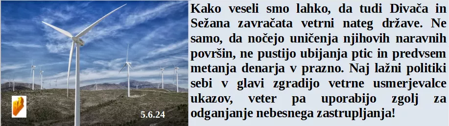 Kakšno veselje in navdušenost ob začetku volitev. So Sionisti zahtevali uničenje Mednarodnega sodišča za človekove pravice. Tudi Sežana in Divača ne dovolita uničenja svoje pokrajine. Tudi tam daleč elita s poplavami uničuje vse! Bomo čez 10 let imeli neprofitna stanovanja za izbrance!