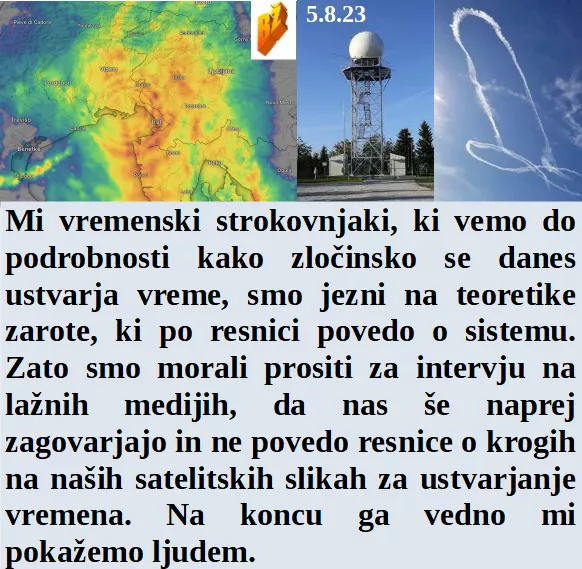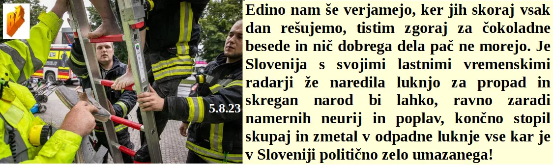 Gasilcem upravičeno najbolj verjamemo saj so na delu vedno, ko jih narod potrebuje. Smo vremenarji vedno na strani varanja ljudstva. V Avstraliji pa so že pred zamenjavo možganov s čipi. V Sahari pri 30 dolgi rokavi, pri nas pri 16 poleti v kratkih, prevroče.