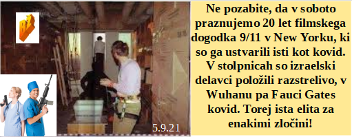 Nekoč v koncentracijskih taboriščih danes pod injekcijami. Lažejo o uporabi testov, da lahko nategnejo ljudi na silo s cepivom. Vdrli v Javno RTV in ničesar niso našli, niti novinarjev. So delavci dolgo nastavljali razstrelivo v stolpnicah, sicer se ne bi hoteli podreti. Spet novo zdravilo za kovid in spet mastne podkupnine za potrditev.