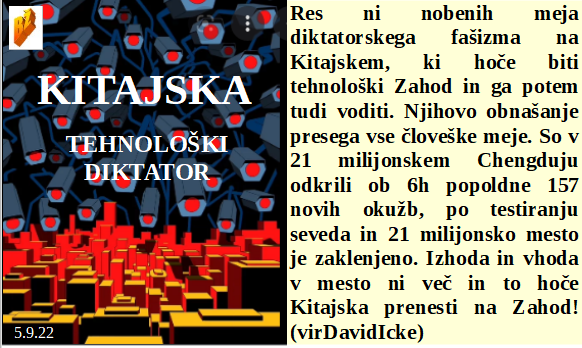 Najsodobnejša tehnologija prikazana skozi gledališče in pokopališča. Od zdaj samo ena žarnica na dan in pet davkov za vlado. Kitajci odkrijejo s testi 157 pozitivnih in mesto Chengdu z 21 milijoni ljudi zaprejo. ZDA zaradi nafte v Siriji še naprej pobijajo. In dežela piva bo zelo verjetno pozimi zaprla kar 70% pivnic. Imam pripravljen izjemen scenarij, ki daje po 2000€ vsakemu, ki dela na lažnem kovidu!