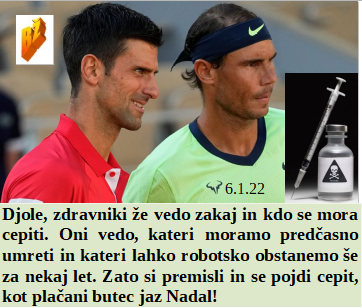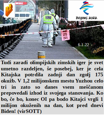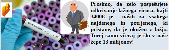 Za vsakega lažno odkritega okuženega je namenjenih 3400€. Na Kitajskem pred OI zelo malo okuženih, zato zapirajo mesta na veliko. Nadal že ve skozi denarnico kdaj in koga je treba cepiti. Očitno je korona del prostitutskega sistema. In zdaj Cerkveni noivinarji po zaslugi Pahorja bivakirajo v RTV SLO. Neuvrščeni so celo premikali določene stvari, danes ne smejo biti nikjer prisotni!