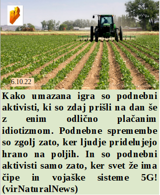 Pri istospolnih parih je zdaj takoj vidno kdo je zanosil in bo rodil. Je orkan na Floridi odkril tudi Ukrajinsko zastavo. Avstralija gre v nasilno obvezno cepljenje. Sloveniji je pomembno imeti odlične stike z Ukrajinskim Azov. Podnebni aktivisti zahtevajo prenehanje pridelave hrane na poljih, ker to uničuje podnebje. Kdo je kdaj resno rekel in dokazal, da so cepiva za zdravljenje?
