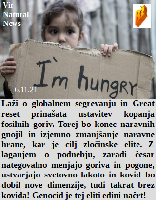 Lačna sem zato ne lažite več o podnebnem segrevanju, ker bom zaradi tega laganja še bolj lačna. Rešite svoje otroke pred psihopati, cepiva so zanje konec. Lutka Biden z lahkoto podpiše za nakup 650 milijonov orožja. Si predstavljate, da je v bolnišnicah sem in tja tudi kakšen necepljen? Inšpektorji ponosno vzdržujejo PCT fašistični sistem nad ljudstvom. So oblastniki ugotovili, da jim maske iz blaga več ne pomagajo!