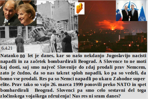 Nepozaben film o lažnivi deklici na naših ekranih, ki to dela samo zaradi denarja. In testov v Avstriji ni več neškodljivih, mi pa tudi že vpijemo proti. Kdaj dobimo dovolj doz za odstranitev dovolj Slovencev šef še ne ve. 80 let je napada na Beograd, zato je prav, da z napadalci snujemo lep jutri, a ne? In, če na Zahodu govoriš preveč resnice o covid nategu te najmanj zblokirajo!