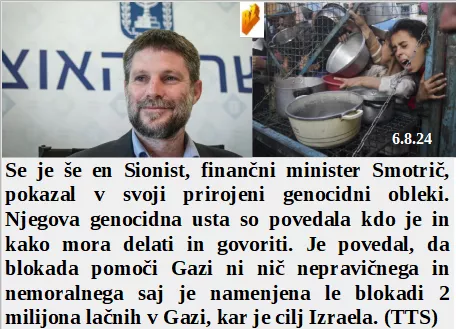 In ljudje počasi le dojemajo kakšen nateg so električna vozila. Kako predrzno je napasti Ameriško bazo v Iraku. 79 let je kar so Američani izvedli genocid. Misli na človeka dvojno vplivajo. So v Parizu jedli veliko zdrave hrane. Še en sionistični minister je pokazal svojo genocidno dušo!