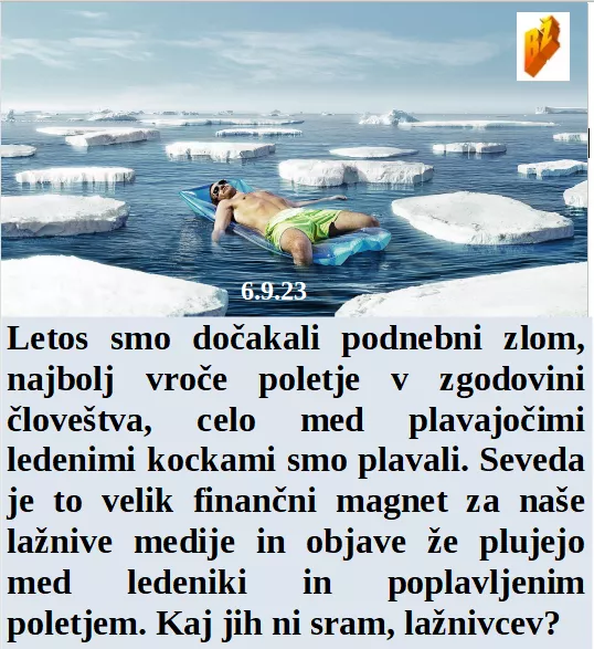 Se svet globalno izjemno pregreva in celo na Antarktiki imajo težave. Vam je odneslo hišo ampak to davkarjev sploh ne zanima. Celo največja baraba med kovidnimi prevaranti priznava, da maske čisto nič ne koristijo. Zberem upokojence in jim lažem o sovraštvu in pokojninah.