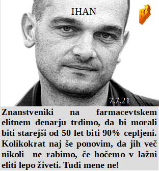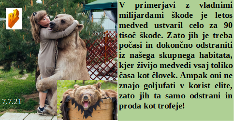 Po cepljenju imate še najmanj en mesec življenja, lahko tudi manj. Starejši od 50 let morajo končno izginiti s planeta. Nekateri pa imajo celo samo 3 dni časa za preostanek svojega življenja. So pa tudi izjeme in se imata človek in medved zelo rada, ampak takih ljudi je res peščica. Delati očala v Sloveniji, kjer morate delavca plačati celo 4 krat manj kor v EU, se pa res ne splača. Pa vojska za necepljene in neubogljive je nujna.