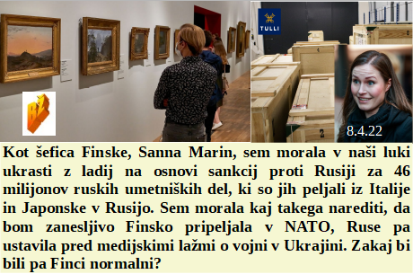 Nam bodo iz piščančjih farm še ptičjo gripo poslali? Če ne bi bilo NATA bi imeli težave z dobavo biološkega orožja in pobijanjem ljudi. Celo Finci so svoje roke namočili v krajo Ukrajinske zgodbe. In Šanghaj je zgodba za zelo neumne in naivne, saj verjamejo v zaprtje milijonskega mesta zaradi 268 prehladov. Ni važen nacistični zank ali simbol ubite glave, važen je seks.
