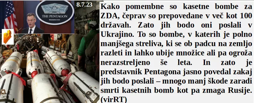 Je poleti nenormalno, da je zunaj 30 stopinj, je navadno le 20. Je Macron vsem s pametnim telefonom določil popolno kontrolo. So ZDA pobrale kasetne bombe v 100 deželah in jih poslale v Ukrajino. Bodo v novih domovih za stare samo istospolni?