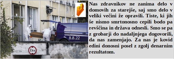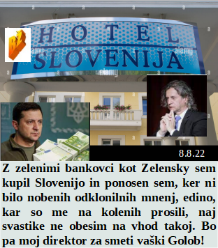 Zdravniki smo v domovih za ostarele že oddelali in tam ne rabimo službe. Sta se Golob in Zelenski dogovorila za prodajo dela Slovenije. Lažni kovid ima domovanje tudi v Rusiji. Kako to, da je kdo sploh kdaj pomislil, da ne delava skupaj kot organizirana ekipa? Tudi nafta je en lep kupček iz katerega je možno veliko vzeti!