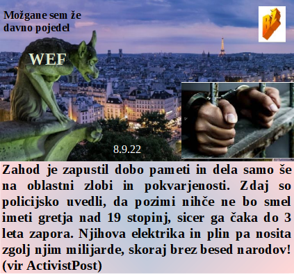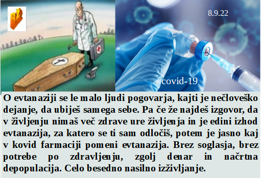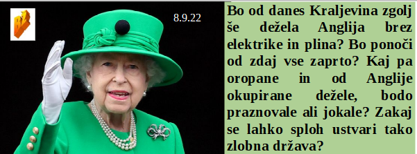 Borita se dve strani, tisti za milijarde in tisti, ki vedo, da kovida ni. Če boš letos pogrel stanovanje nad 19 stopinj te čaka do 3 leta zapora. Letošnja zima bo mrzla v stanovanju, z malo hrane in velikimi računi. Evtanazija je naravno normalen potek zapuščanja življenja, če so bolečine in težave tako velike, da na tem svetu nimaš več kaj delati! In kolonializem je odšel, kar šefica!