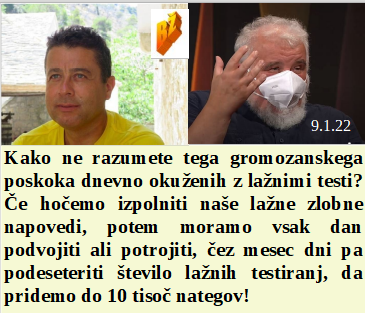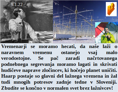 Tudi vremenarji zelo radi lažemo o globalnem segrevanju znotraj Great Reset. Zelo moramo lagati, če hočemo do 19. januarji priti z lažmi do 10 tisoč okuženih ta dan. Francozi vedno bolj sovražijo Rothschildovega sinčka. So včeraj testirali politične možgane in je bila številka prevelika, da je ne bi raje na kovid vrgli. V Kaliforniji morajo okuženi zdravstveni delavci obvezno na delo.
