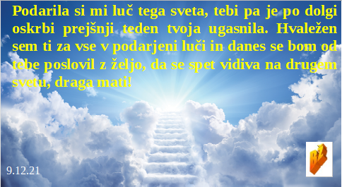 Tudi nekomu, ki ti prižge luč sveta nekoč po naravi taka luč ugasne. Sem odločno proti novoletnim javnim zabavam v Ljubljani, zato pa sem med elito. Orožje je lep vir zaslužka tudi politikom. Bomo imeli digitalni nadzor Slovenije do popolnosti. Bomo v kratkem polno cepljeni po stotem odmerku. Tudi književniki so postali kovid propaganda. Tudi konkretna vojska gre nad novoletne javne police!