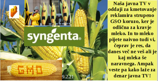 Kako lepo, ko javna TV reklamira strupeni GSO, kajne? So v Ajdovščini odgovorni malce zamočili in kupili preveč vnaprej znano pozitivnih testov. Satanizem je treba preko otrok tudi pri nas razširiti. Brez CO2 in brez elektrike bomo pa samo rajali!