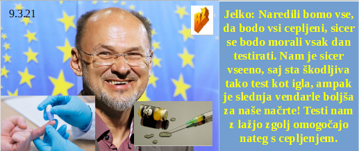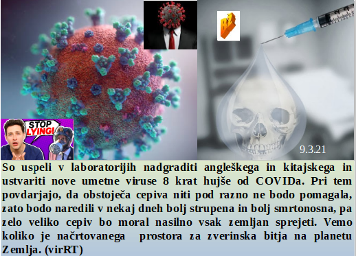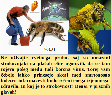 Nam iluminati čisto vse naročijo in ukažejo. Ali testirati ali cepiti, oboje je skoraj enako škodljivo. Za par dni smo nategnili gostince in spet jih bomo v naslednjih dneh. A mene zlorabljajo za 5G genocid? Ne uživajte cvetnega prahu, ker s tem manjšate farmacevtske natege. Prihajata nova laboratorijska izdelka, samo ne nasedajte.