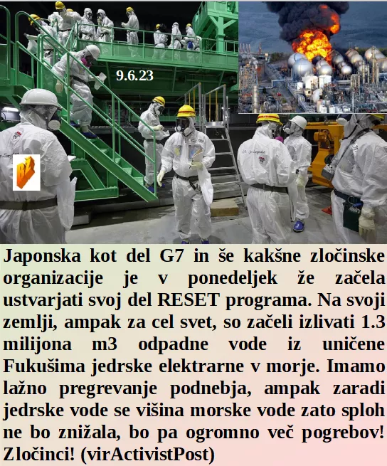 Ko se nadčlovek usmeri na njemu motečo državo, potem lije, lije in lije. So v Rušah pokazali, da je v občini še pameti. In Japonska že uboga G7 zločinski RESET in izliva nuklearno odpadno vodo v morje. Smo podpisali WHO, smo podpisali zavezo cepilni diktaturi!