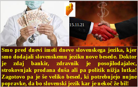Satanistične združbe danes na polno delujejo, na žalost. Neuporabna cepiva danes niso za ohranjanje vašega zdravja, ampak za njegovo uničenje. Ko ti doktor pove, da so danes zdravniki le uslužbenci svetovne mega farmacije. Smo ob dnevu slovenskega jezika vpeljali kar nekaj zdravstvenih novih besed. In norčevanje na UKC ostaja nemoteno.