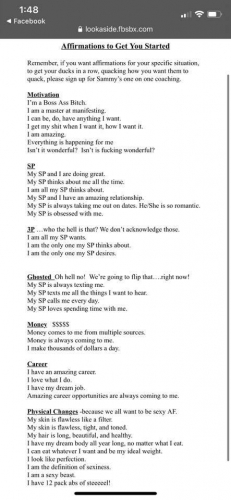 Remember, if you want affirmations for your specific situation, to get your ducks in a row, quacking how you want them to quack, please sign up for Sammy’s one on one coaching.