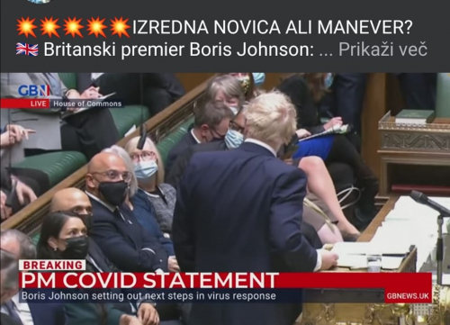 Angleški Premier Johnson, seveda brez maske, obvesti svoje sužnje, da tudi oni ne rabijo več nositi te sužnjelastniške oprave. Kot šef ljudstva, ki je zasužnjilo toliko narodov v preteklosti, je prav, da o tem najprej obvestiš svoje sužnje. Moj "poklon" zate.