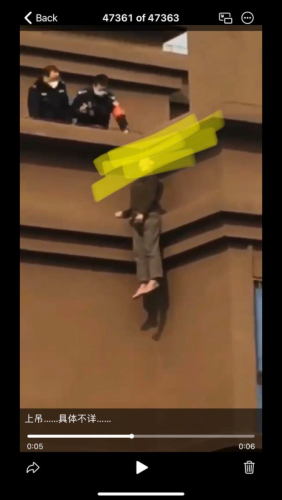 Množični samomori pretresajo Kitajsko, zlasti regije Jilin in Šanghaj! Številni kitajski državljani so že tedne v hišnem priporu. Veliko staršev je ugrabljenih. V vsaki regiji, v vsakem mestu, kjer je izolacija, državljani ne morejo niti kupiti živil. Dovoljeni so le za testiranje na Covid-19. Veliko državljanov umira. Mnogi so obupani. Mnogi zdaj delajo samomor, ker ne prenesejo več vse norosti, ki jo širi režim KPK ... Trenutno je veliko več grozljivih videov in slik dogajanja, predvsem na Twitterju.