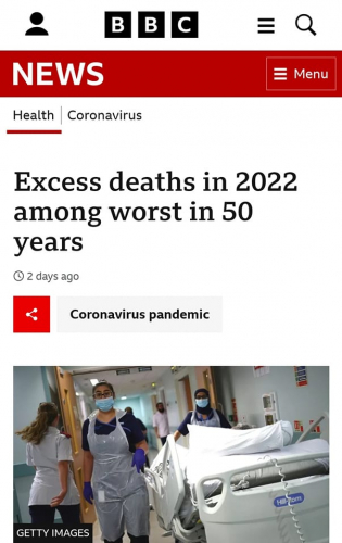 Kljub ali zahvaljujoč več kot 80-odstotni precepljenosti je leta 2022 v Združenem kraljestvu umrlo 650.000 ljudi ali 9 % VEČ kot leta 2019.