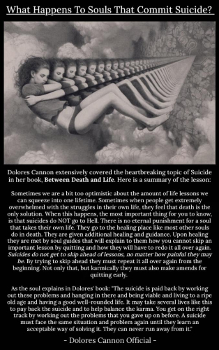 Soul: Yes. Many times when a suicide happens it is an opportunity for the other souls in the family to learn from the experience. ”