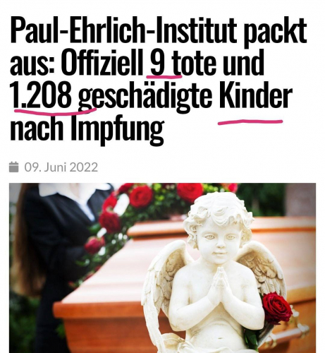 Pri PEI (Paul Ehrlich Institut) je bilo do konca marca 2022 prijavljenih 2.810 smrti, za katere se sumi, da so umrli zaradi cepljenja.