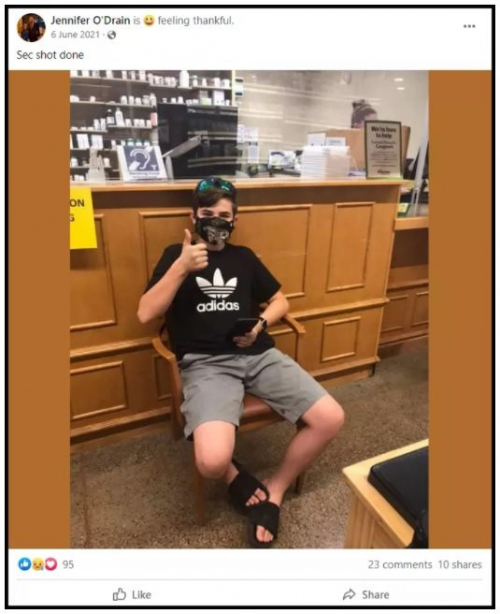 Šestega junija lani je njegova mati Jennifer O'Drain to objavila na svoji Facebook strani, potem ko je Jack prejel drugi odmerek cepiva COVID :