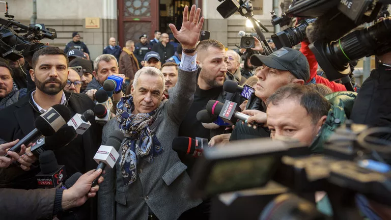 waves as he leaves a district court in Bucharest, March 5, 2025. © AP Photo/Vadim Ghirda