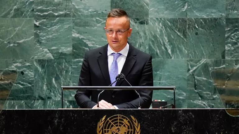 Peter Szijjarto addresses the UN General Assembly in New York City, September 23, 2021 © Getty Images / Mary Altaffer