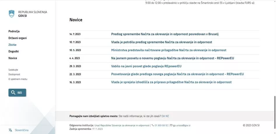 Vlada RS je na 58. seji 10. 7. 2023 potrdila je tudi predlog spremembe Načrta za okrevanje in odpornost, ki sledi bistvenim spremembam okoliščin, potem ko ga je julija 2021 potrdil Svet Evropske unije.
